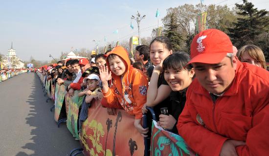 阿拉木图民众迎圣火 世界人民的共同盛会